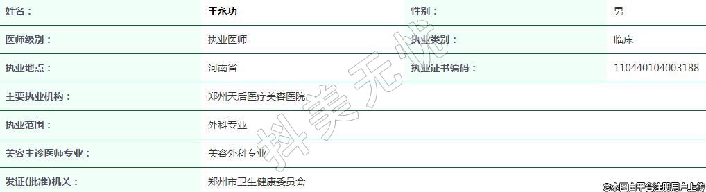 主要執(zhí)業(yè)機(jī)構(gòu):鄭州天后醫(yī)療美容醫(yī)院
