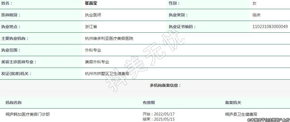 杭州維多利亞醫(yī)療美容執(zhí)業(yè)醫(yī)師