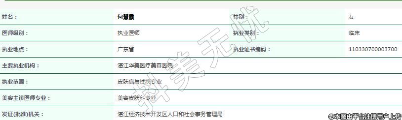 主要執(zhí)業(yè)機構:湛江華美醫(yī)療美容醫(yī)院