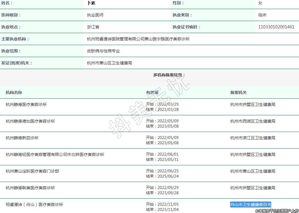 主要執(zhí)業(yè)機(jī)構(gòu):杭州班睿漫詩(shī)醫(yī)院管理有限公司蕭山振寧路醫(yī)療美容診所