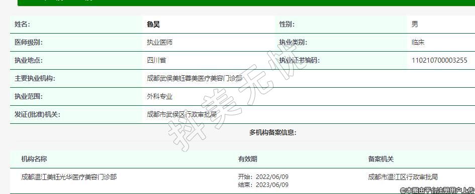 主要執(zhí)業(yè)機構:成都武侯美鈺蓉美醫(yī)療美容門診部