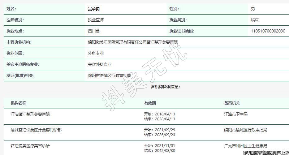 主要執(zhí)業(yè)機(jī)構(gòu):綿陽微美匯醫(yī)院管理有限責(zé)任公司茗匯整形美容醫(yī)院