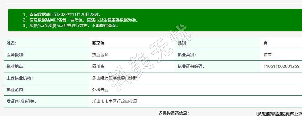 主要執(zhí)業(yè)機(jī)構(gòu):樂山經(jīng)緯醫(yī)學(xué)美容門診部