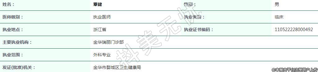 主要執(zhí)業(yè)機(jī)構(gòu):金華瑞麗門(mén)診部