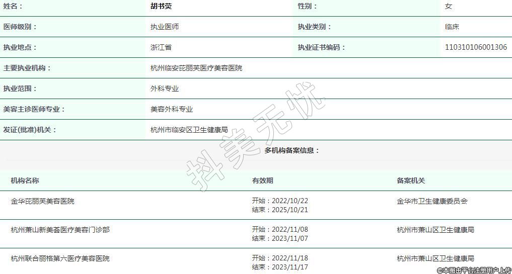 主要執(zhí)業(yè)機構(gòu):杭州臨安芘麗芙醫(yī)療美容醫(yī)院