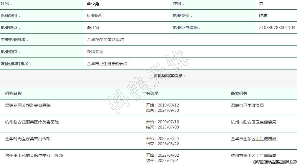 金華芘麗芙醫(yī)療美容執(zhí)業(yè)醫(yī)師