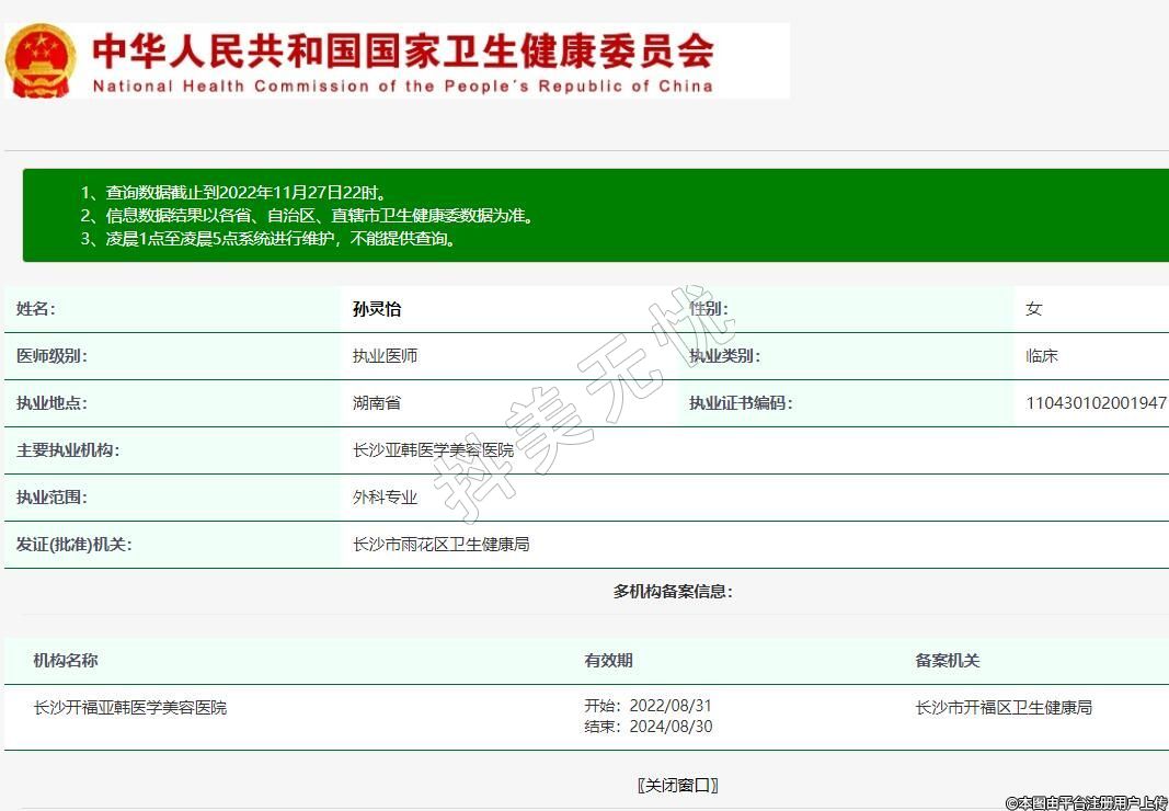 發(fā)證(批準(zhǔn))機關(guān):長沙市雨花區(qū)衛(wèi)生健康局