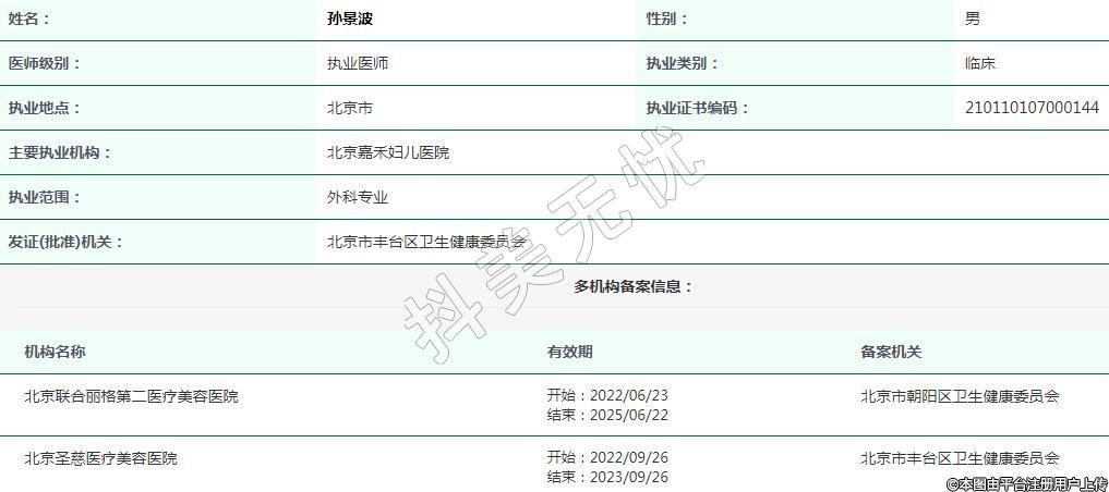 北京聯(lián)合麗格第二醫(yī)療美容執(zhí)業(yè)醫(yī)師