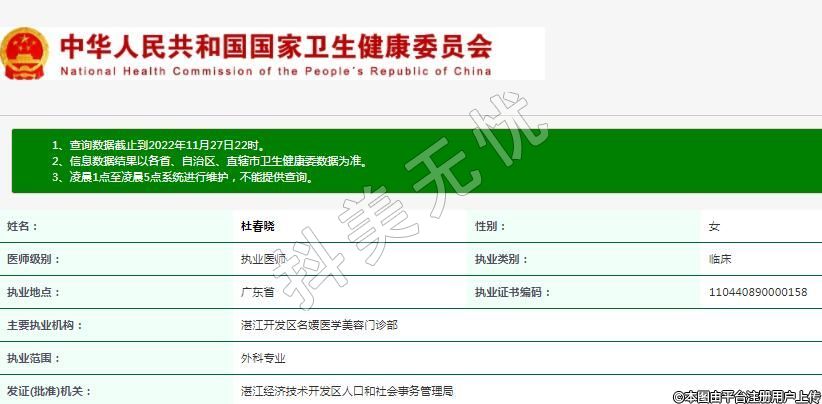 主要執(zhí)業(yè)機構(gòu):湛江開發(fā)區(qū)名媛醫(yī)學美容門診部
