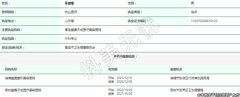 主要執(zhí)業(yè)機構:青島壹美天成醫(yī)療美容醫(yī)院