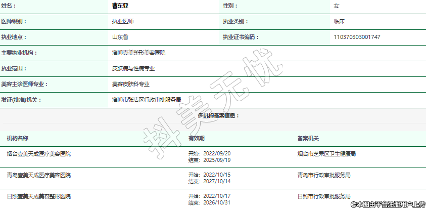 主要執(zhí)業(yè)機構:淄博壹美整形美容醫(yī)院