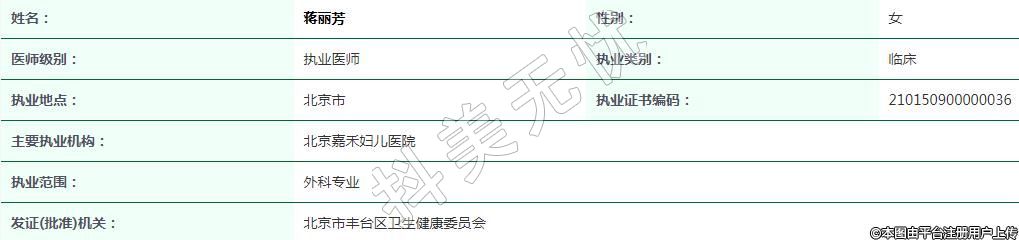 北京嘉禾婦兒醫(yī)療美容執(zhí)業(yè)醫(yī)師