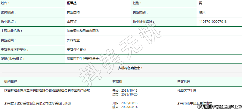機構(gòu)名稱:濟南雅琪朵醫(yī)療美容醫(yī)院有限公司槐蔭雅琪朵醫(yī)療美容門診部