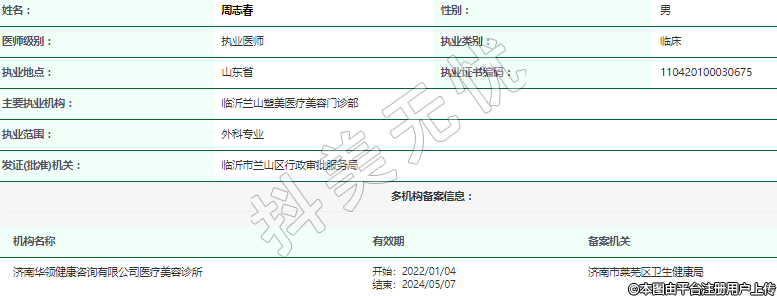 機構(gòu)名稱:濟南華領(lǐng)健康咨詢有限公司醫(yī)療美容診所