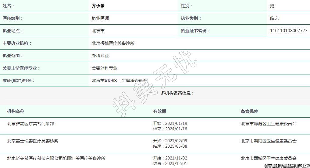 北京櫻桃醫(yī)療美容執(zhí)業(yè)醫(yī)師