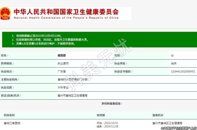主要執(zhí)業(yè)機(jī)構(gòu):惠城時光醫(yī)療美容門診部