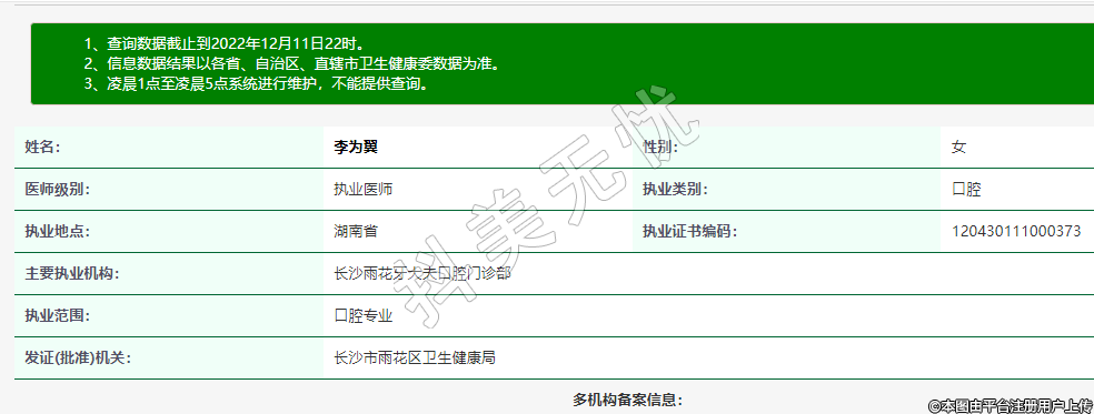 主要執(zhí)業(yè)機(jī)構(gòu):長沙雨花牙大夫口腔門診部