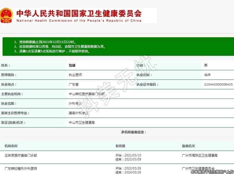 主要執(zhí)業(yè)機(jī)構(gòu):中山韓妃醫(yī)療美容門診部