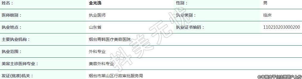 煙臺青韓醫(yī)療美容執(zhí)業(yè)醫(yī)師