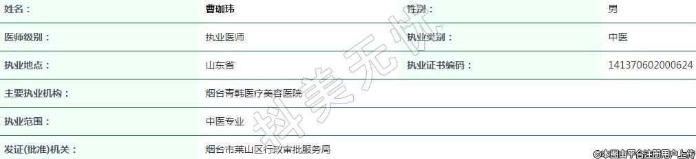 煙臺青韓醫(yī)療美容執(zhí)業(yè)醫(yī)師