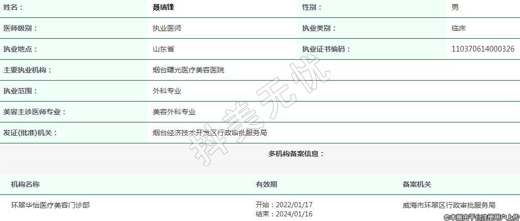 主要執(zhí)業(yè)機構(gòu):煙臺曙光醫(yī)療美容醫(yī)院