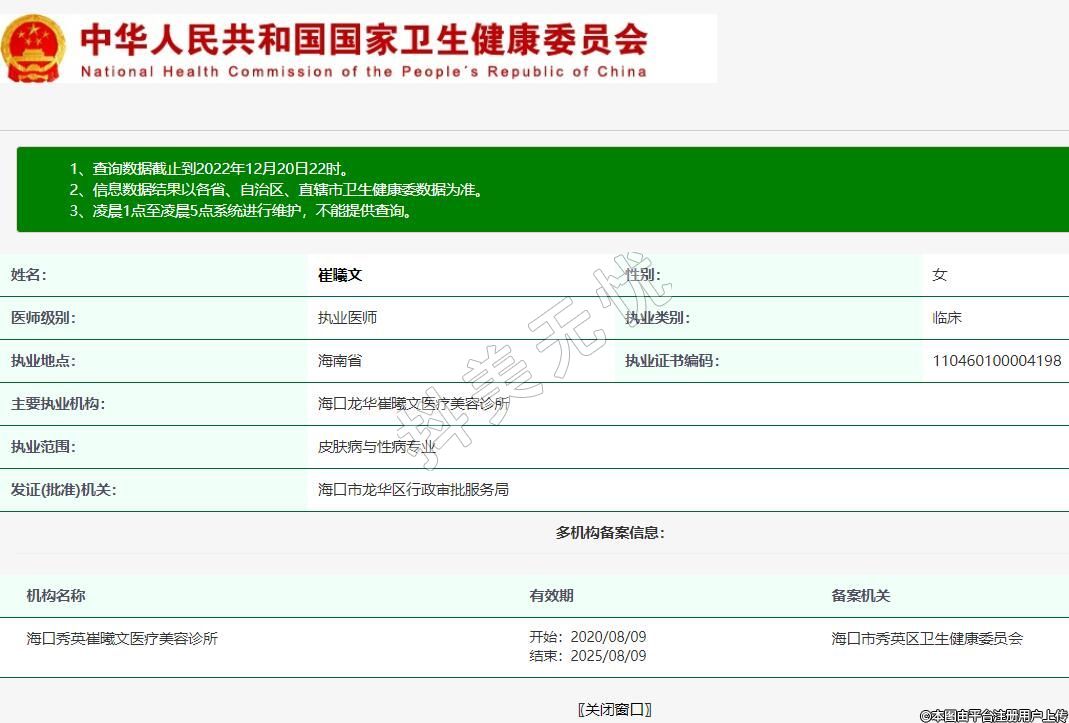 主要執(zhí)業(yè)機構(gòu):??邶埲A崔曦文醫(yī)療美容診所