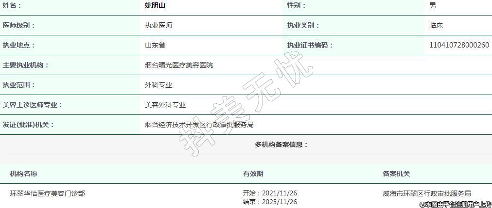 煙臺曙光醫(yī)療美容執(zhí)業(yè)醫(yī)師
