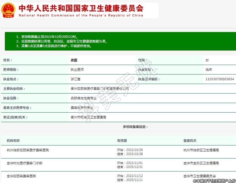 主要執(zhí)業(yè)機(jī)構(gòu):衢州芘麗芙醫(yī)療美容門(mén)診部有限責(zé)任公司