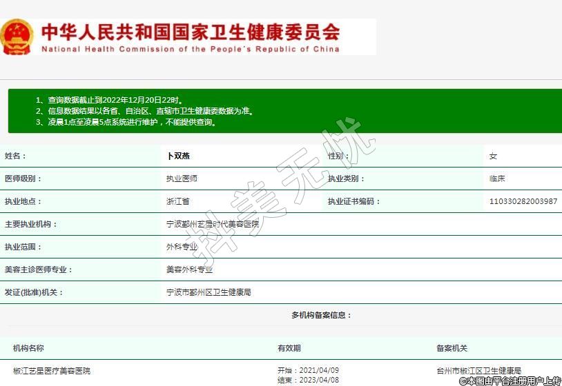 主要執(zhí)業(yè)機(jī)構(gòu):寧波鄞州藝星時代美容醫(yī)院