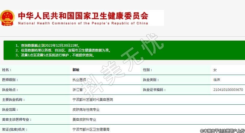 主要執(zhí)業(yè)機(jī)構(gòu):寧波鄞州藝星時代美容醫(yī)院