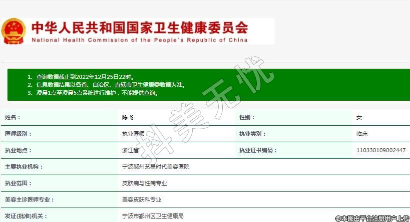 發(fā)證(批準)機關:寧波市鄞州區(qū)衛(wèi)生健康局