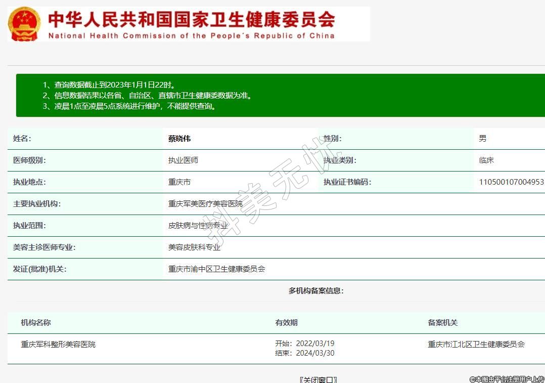 主要執(zhí)業(yè)機構(gòu):重慶軍美醫(yī)療美容醫(yī)院