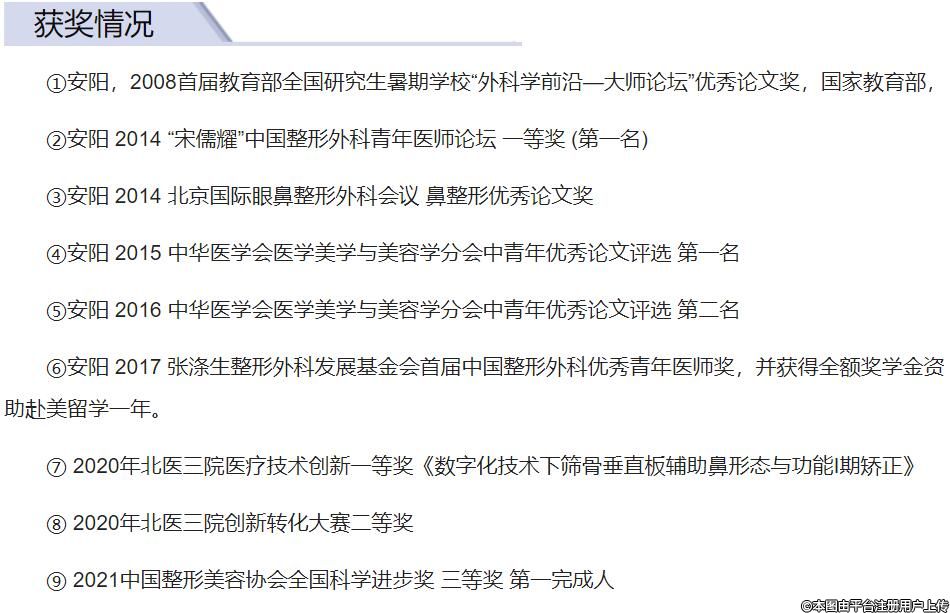 6) Yang An, Dong Li. Morphologic and functional correction for nasal deviation/ A Novel Technique for Short Nose Correction In Asians: Combining M-shaped Conchal Cartilage With Septal Extension Graft/ Short Nose Correction in Asians.第19、20、21屆韓國(guó)國(guó)際鼻整形年會(huì)2015.2016.2018,韓國(guó)首爾,大會(huì)報(bào)告并擔(dān)任分會(huì)場(chǎng)主席