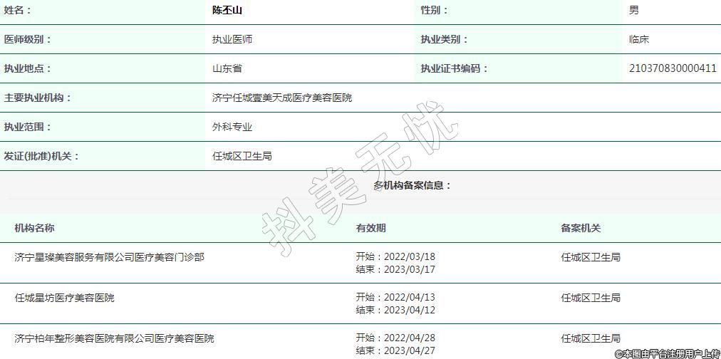 主要執(zhí)業(yè)機構:濟寧任城壹美天成醫(yī)療美容醫(yī)院