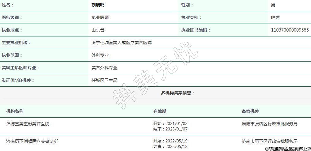 主要執(zhí)業(yè)機(jī)構(gòu):濟(jì)寧任城壹美天成醫(yī)療美容醫(yī)院