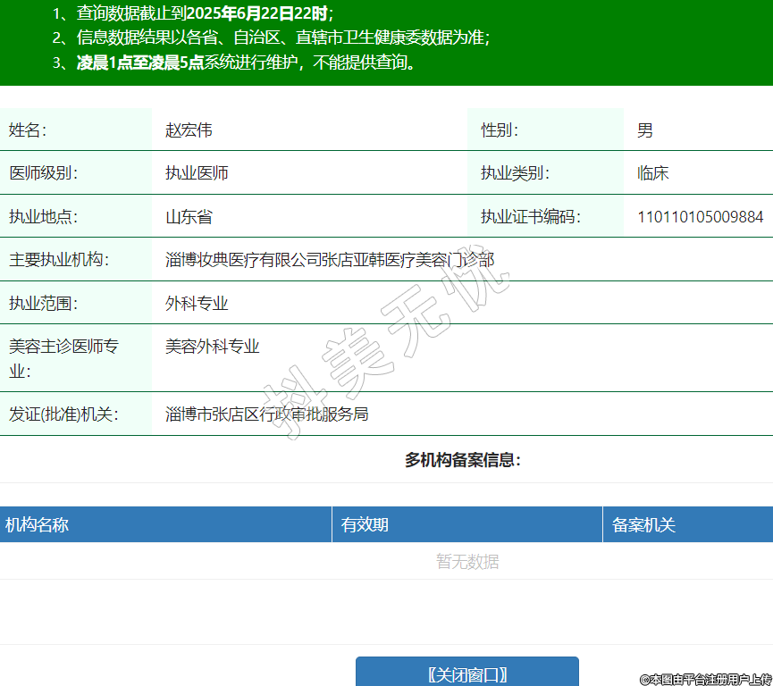 姓名:趙宏偉性別:男醫(yī)師級別:執(zhí)業(yè)醫(yī)師執(zhí)業(yè)類別:臨床執(zhí)業(yè)地點:山東省執(zhí)業(yè)證書編碼:110110105009884主要執(zhí)業(yè)機構(gòu):淄博妝典醫(yī)療有限公司張店亞韓醫(yī)療美容門診部執(zhí)業(yè)范圍:外科專業(yè)美容主診醫(yī)師專業(yè):美容外科專業(yè)發(fā)證(批準(zhǔn))機關(guān):淄博市張店區(qū)行政審批服務(wù)局 -