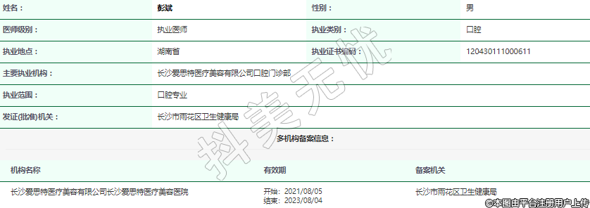 主要執(zhí)業(yè)機(jī)構(gòu):長(zhǎng)沙愛(ài)思特醫(yī)療美容有限公司口腔門診部
