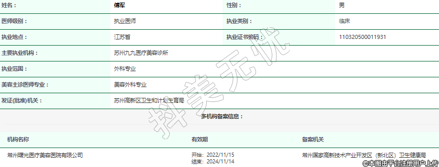 主要執(zhí)業(yè)機(jī)構(gòu):蘇州九九醫(yī)療美容診所