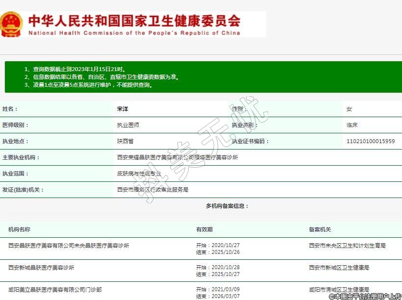 主要執(zhí)業(yè)機構(gòu):西安榮耀晶膚醫(yī)療美容有限公司雁塔醫(yī)療美容診所