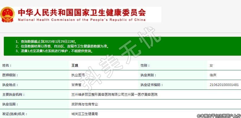 主要執(zhí)業(yè)機(jī)構(gòu):蘭州維多麗亞整形美容醫(yī)院有限公司蘭州第一醫(yī)療美容醫(yī)院