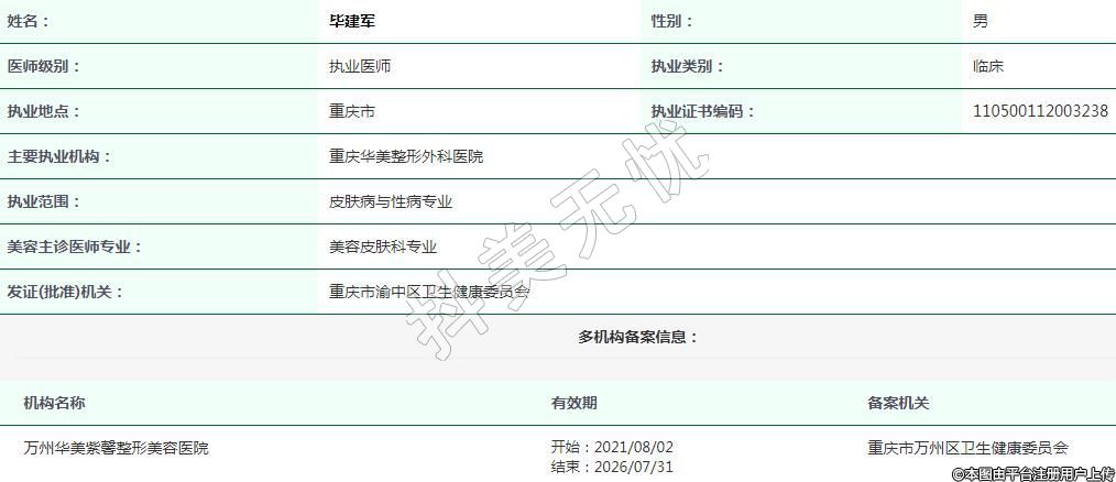 主要執(zhí)業(yè)機構(gòu):重慶華美整形外科醫(yī)院