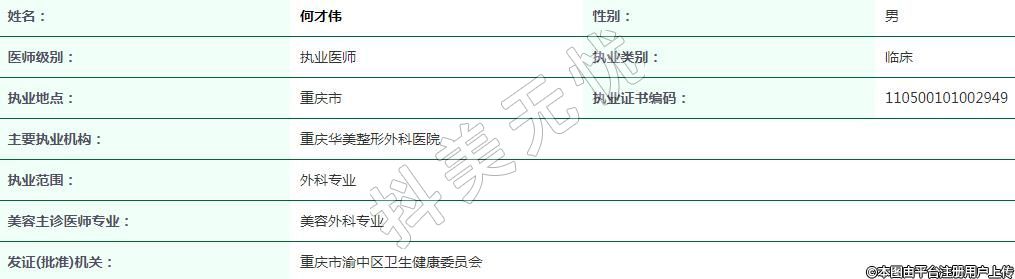 主要執(zhí)業(yè)機(jī)構(gòu):重慶華美整形外科醫(yī)院