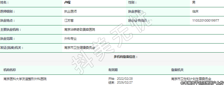 主要執(zhí)業(yè)機(jī)構(gòu):南京華韓奇致美容醫(yī)院