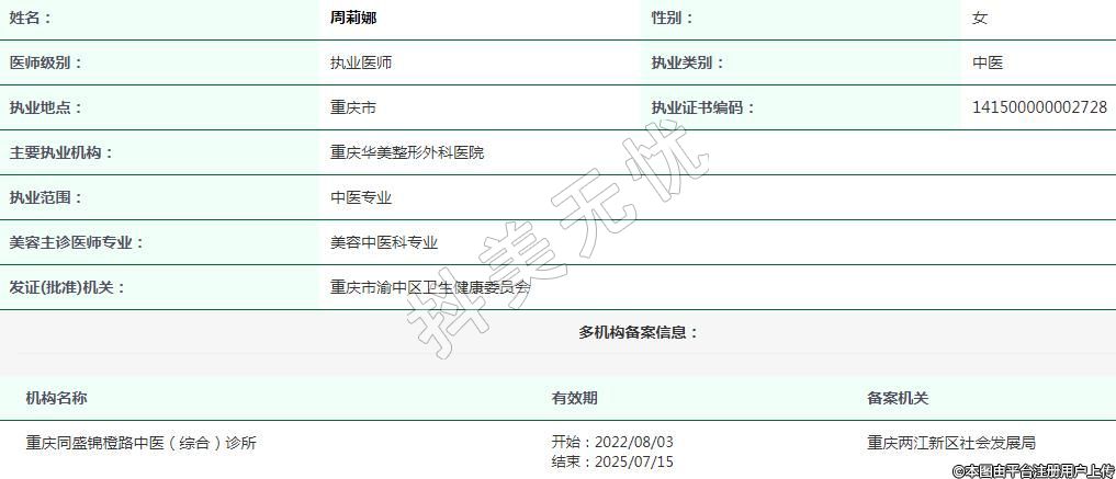 主要執(zhí)業(yè)機(jī)構(gòu):重慶華美整形外科醫(yī)院