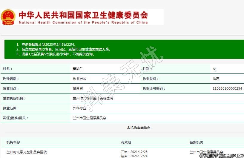 主要執(zhí)業(yè)機(jī)構(gòu):蘭州時光相伴整形美容醫(yī)院