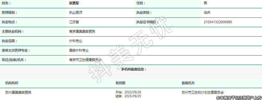 主要執(zhí)業(yè)機(jī)構(gòu):南京康美美容醫(yī)院