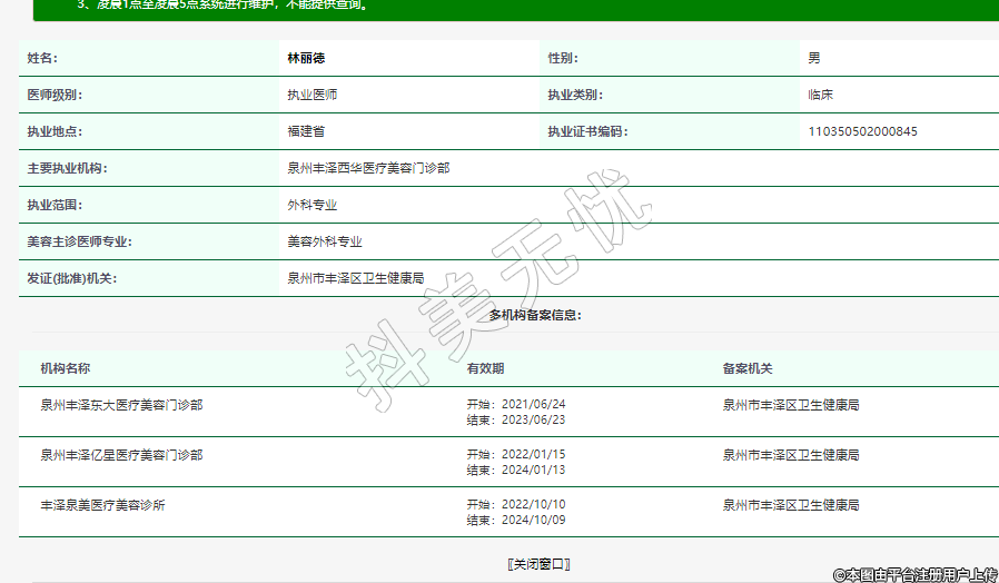 主要執(zhí)業(yè)機(jī)構(gòu):泉州豐澤西華醫(yī)療美容門(mén)診部