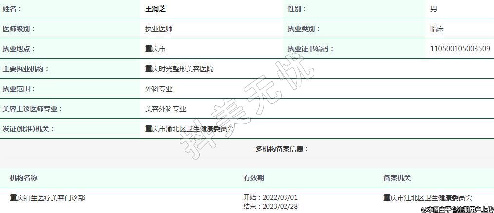 主要執(zhí)業(yè)機構:重慶時光整形美容醫(yī)院