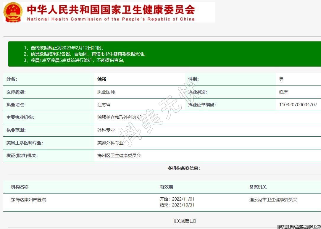 主要執(zhí)業(yè)機(jī)構(gòu):徐強(qiáng)美容整形外科診所