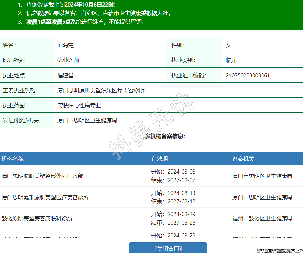 主要執(zhí)業(yè)機(jī)構(gòu):廈門思明原肌美塑濱東醫(yī)療美容診所